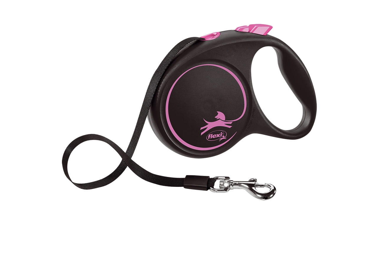 FLEXI Smycz automatyczna dla psa Black Design M taśma 5 m kol. różowy
