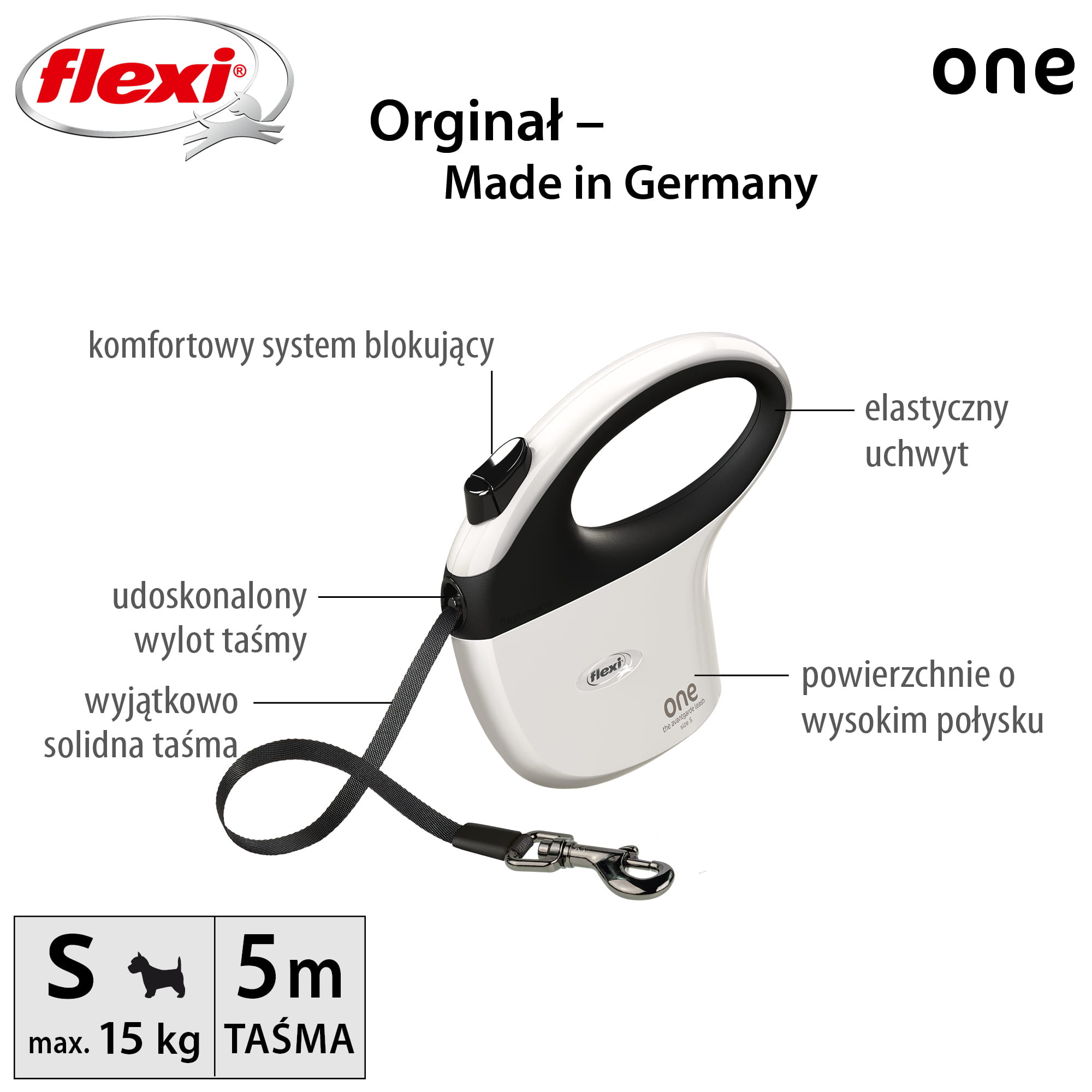 FLEXI Smycz automatyczna dla psa ONE taśma S, 5 m kol.biały