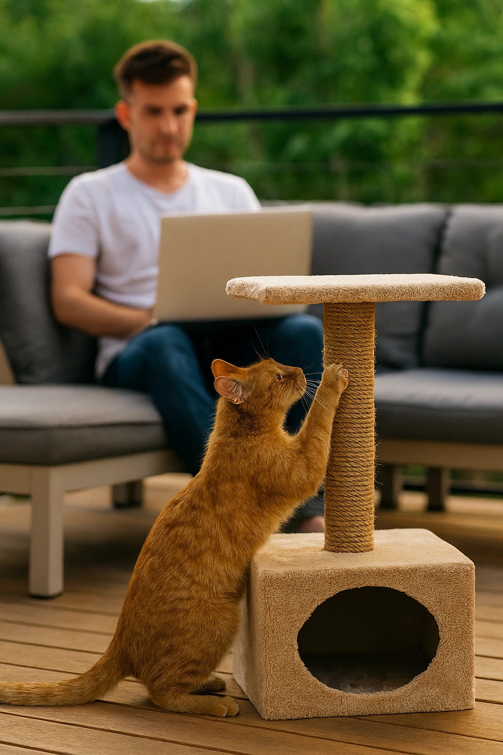 - Słupek do drapania: Pokryty wytrzymałymi, szorstkimi włóknami konopi, które wspierają naturalny instynkt kota do ostrzenia i ścierania pazurów.