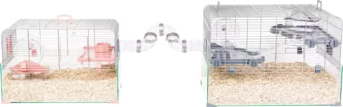 Nowa gama klatek modułowych i akcesoriów do klatek PANAS COLOUR dla małych gryzoni jest idealnie dopasowana do potrzeb myszy i chomików, a produkty wchodzące w jej skład zostały opracowane pod okiem lekarzy weterynarii. Głównym elementem klatek jest praktyczna, szklana kuweta, która nie tylko umożliwia obserwację zwierzęcia, ale także jest bardzo łatwa w czyszczeniu. W celu zapewnienia zwierzęciu jeszcze więcej przestrzeni i rozrywki, wszystkie klatki z gamy PANAS COLOUR można ze sobą łączyć. Po bokach znajdują się wyjmowane zaślepki, które można zastąpić sprzedawanymi oddzielnie tunelami, powodując połączenie dowolnej ilości klatek w jedno komfortowe, przestronne mieszkanie dla gryzonia. Ze względu na niewielkie wymiary klatki, rekomendujemy wykorzystanie możliwościa łączenia jej z innymi klatkami z tej samej serii, dla stworzenia zwierzęciu optymalnej przestrzeni życiowej. Klatki sprzedawane są w zestawie z miseczką, kołowrotkiem i domkiem, do którego produkcji użyto plastiku pochodzącego z recyklingu. Klatki dostępne są w 3 rozmiarach (50, 60, 80) i 3 stonowanych, pastelowych kolorach (różowy, niebieski, szary). Wszystkie produkty z gamy PANAS COLOUR zostały wyprodukowane w Europie.