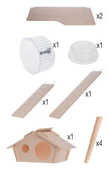 W zestawie klatki Neo Silta znajdują się wszystkie niezbędne akcesoria, aby zapewnić Twojemu pupilowi komfortowe i funkcjonalne miejsce do życia: