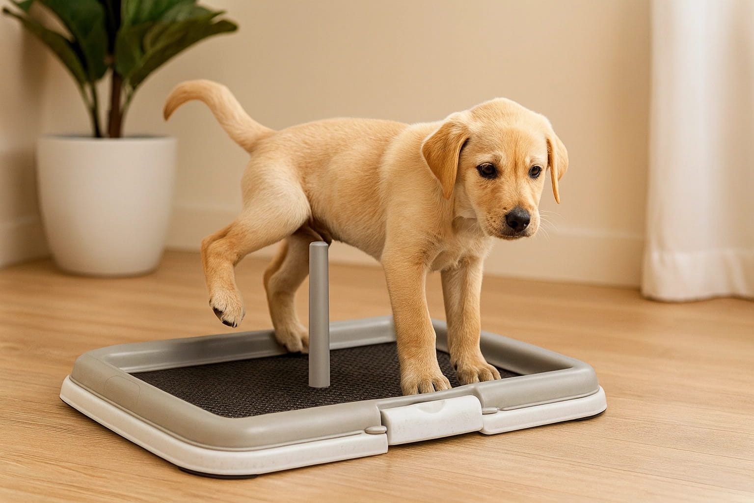 Edukacyjny zestaw dla szczeniaka pomaga nauczyć pieska załatwiania swoich potrzeb. Dołączona tyczka wskazuje szczeniakowi, gdzie unieść łapkę przy oddawaniu moczu. Kratka umożliwia pieskowi zachowanie suchych łapek. Zestaw łatwo jest zainstalować (chłonne maty do kupienia osobno) zarówno na zewnątrz, jak i w domu, gdzie będzie chronić podłogę przed niechcianymi kałużami