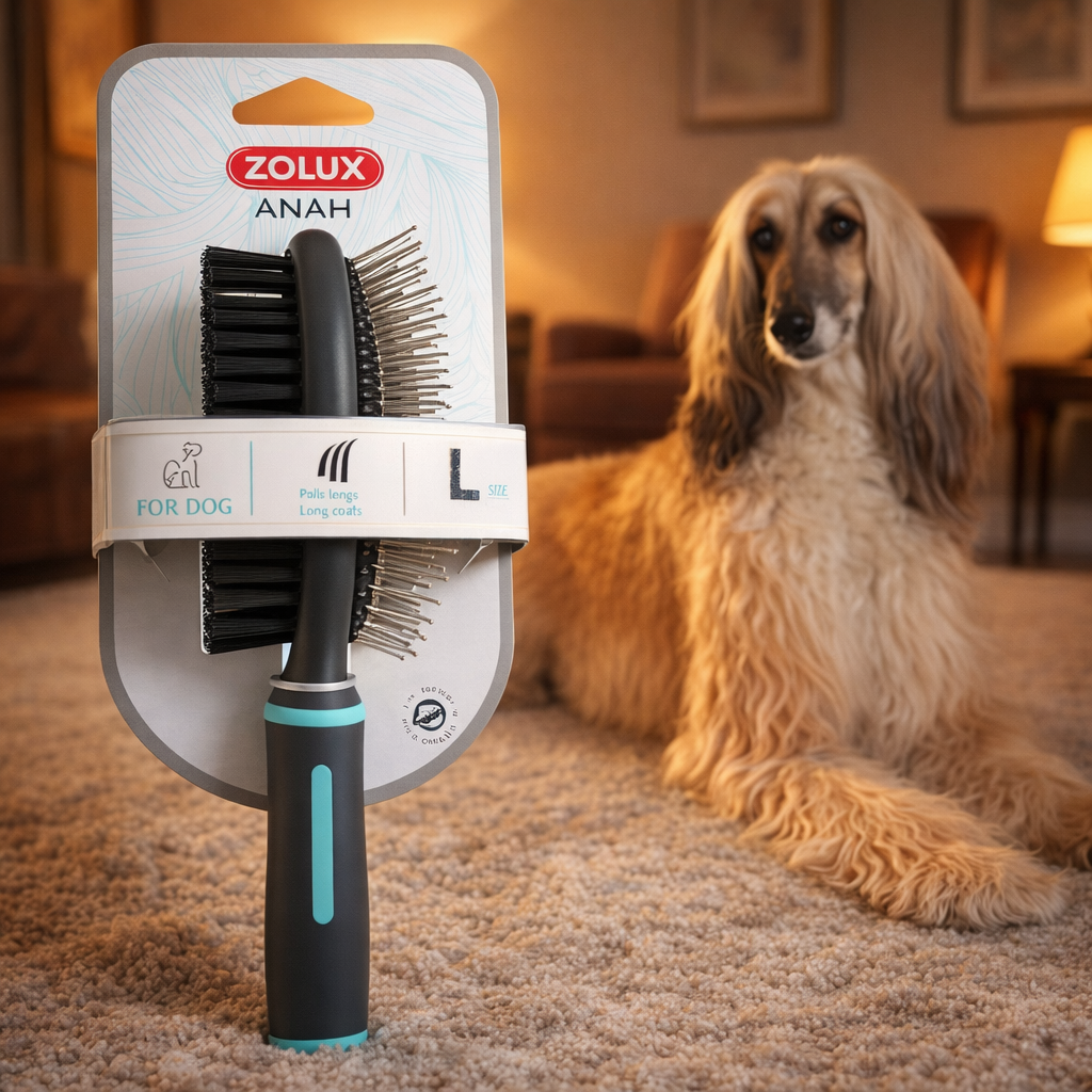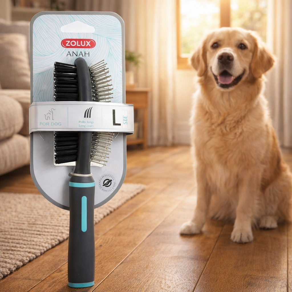 Zapewnij swojemu pupilowi zdrową, zadbaną sierść z ZOLUX ANAH Szczotką Dwustronną Dużą (L) i przekonaj się, jak łatwa i przyjemna może być codzienna pielęgnacja! ✅