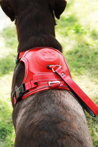 - Regulowane paski umożliwiają idealne dopasowanie szelek do budowy ciała psa, niezależnie od jego wielkości.