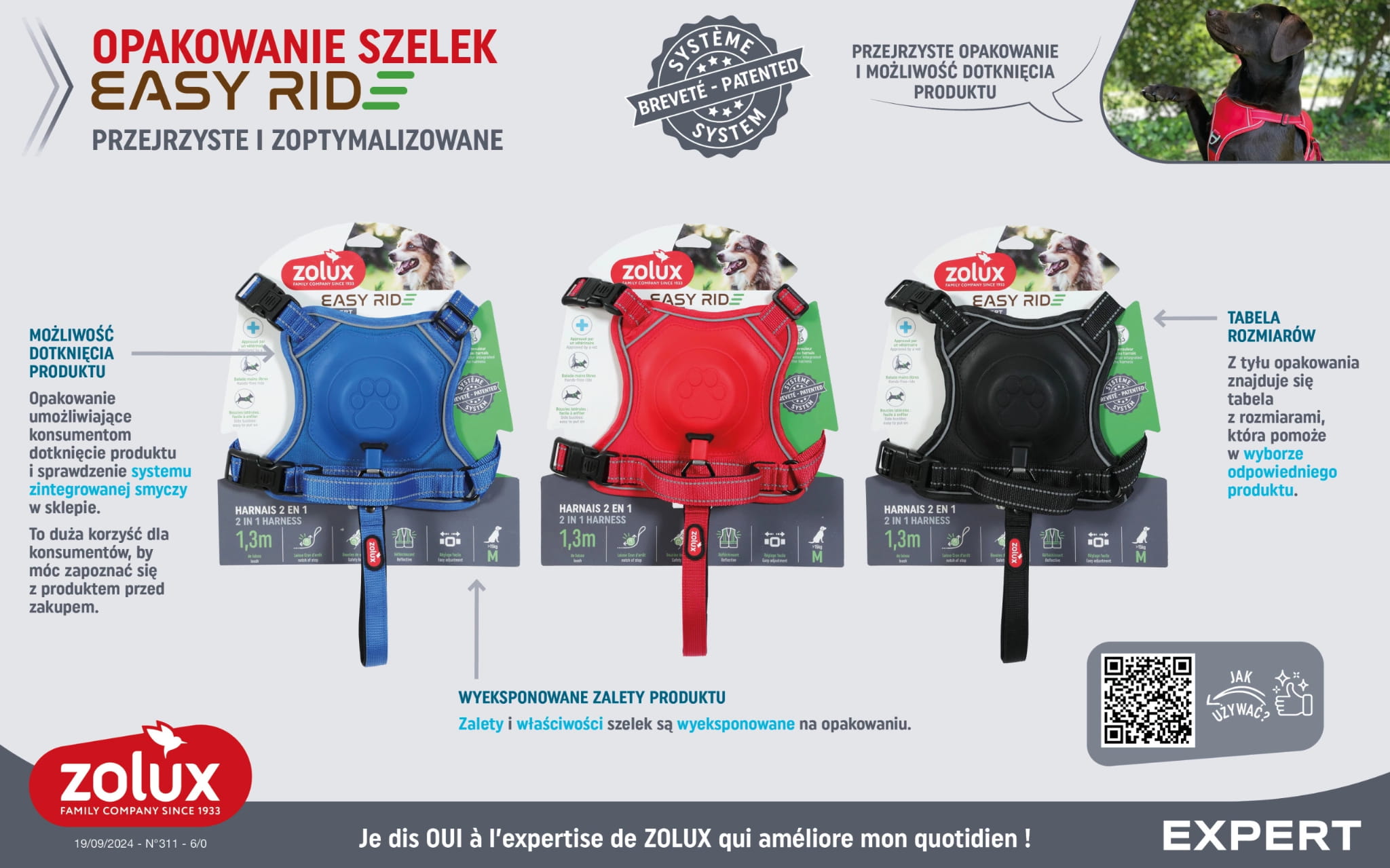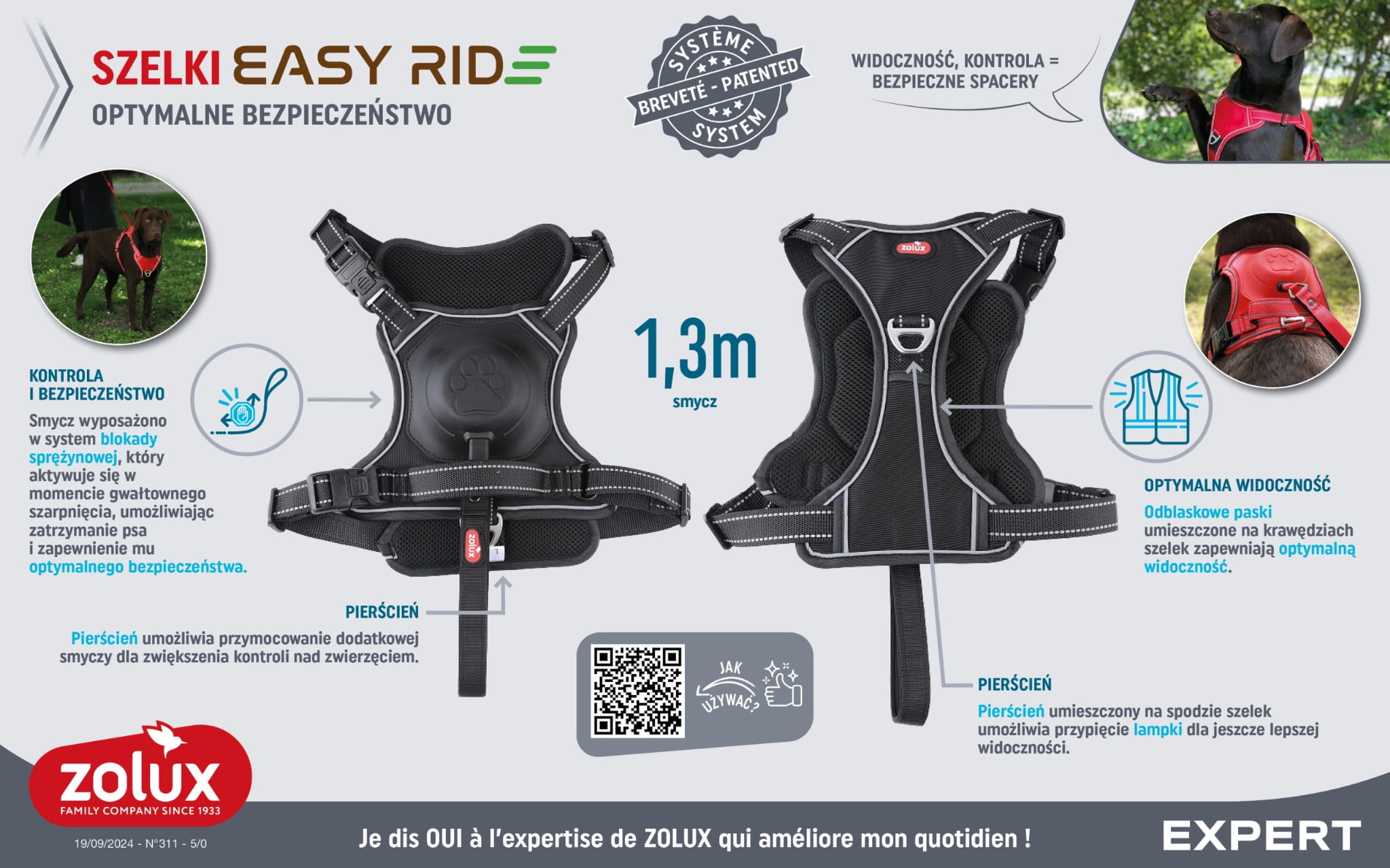 Szelki Easyride zostały wyposażone w mechanizm, który automatycznie zwija smycz, gdy opiekun zdecyduje się pozwolić psu na poruszanie się „luzem”. Dzięki temu rozwiązaniu użytkownik może cieszyć się spacerem z całkowicie wolnymi rękami, bez ryzyka splątania smyczy lub jej przypadkowego ciągnięcia.