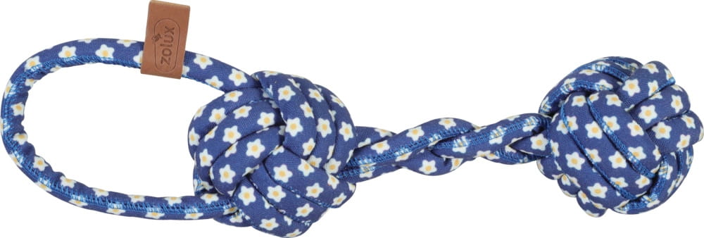 Zabawka gryzak hantel BLUE FLOWER to ręcznie wykonany produkt z nowej gamy zabawek ZOLUX. Wykonana z plecionego sznurka zabawka w kształcie hantla łączy funkcję gryzaka z korzyściami zdrowotnymi dla jamy ustnej psa.