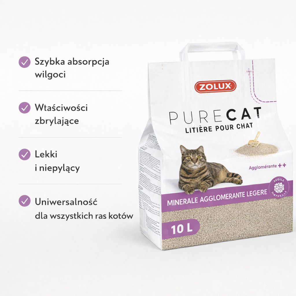 ZOLUX Żwirek dla kota zbrylający naturalny PURECAT 10 l